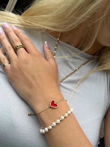 925 silver & 18K gold plated enamel heart bracelets